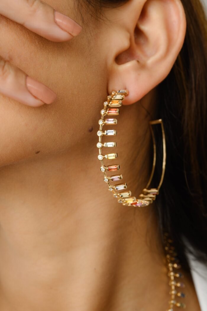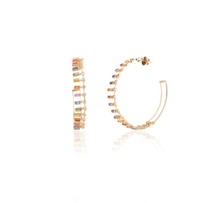 Be the first to review “18k Solid Gold Multi Sapphire & Diamond Big Hoop Earrings” Cancel reply