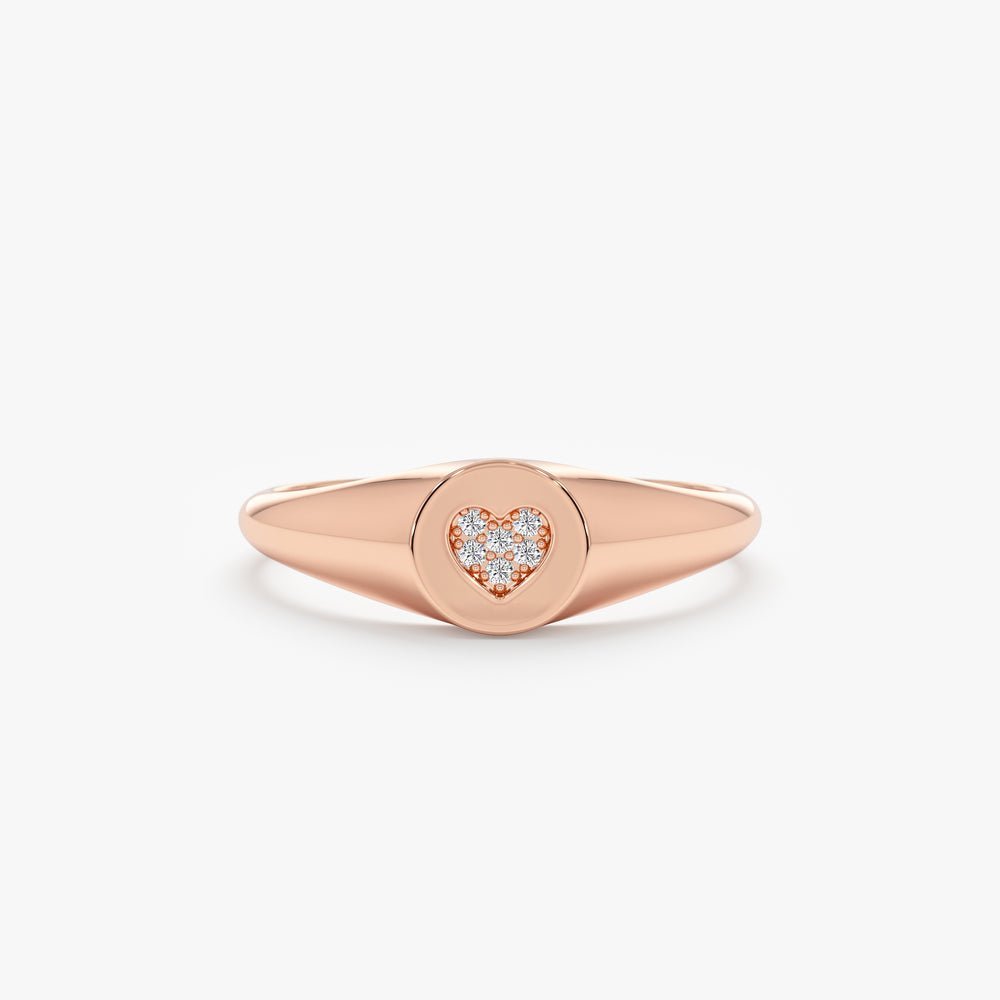 18K Solid Gold Natural Diamond Heart Signet Ring