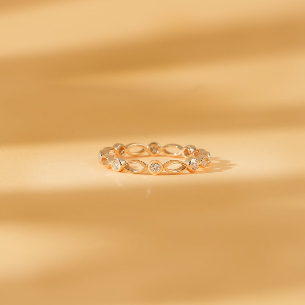 18k Solid Gold Eternity Ring with 0.18 ctw marquise-style natural diamonds. Elegant, stackable, and GIA certified.