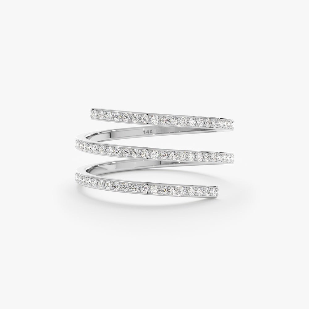 18k solid gold spiral ring with 0.20 ctw natural diamonds. Available in white, rose, or yellow gold. Elegant, modern design. BIS Hallmarked & GIA certified.
