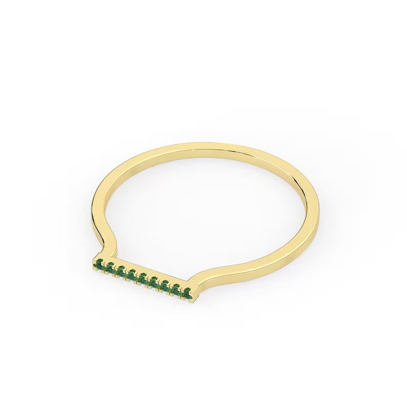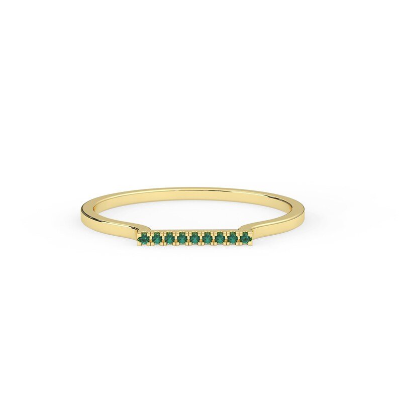 A sleek 18k solid gold ring featuring a natural emerald in a bar setting, offering a modern and sophisticated design perfect for any occasion.