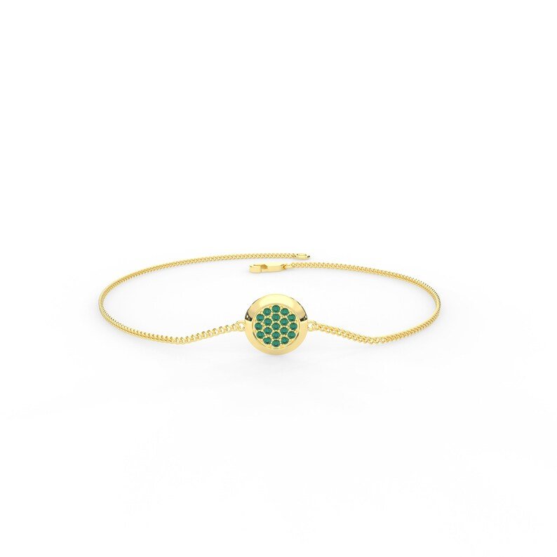 18k Solid Gold Natural Emerald Cluster Disc Bracelet