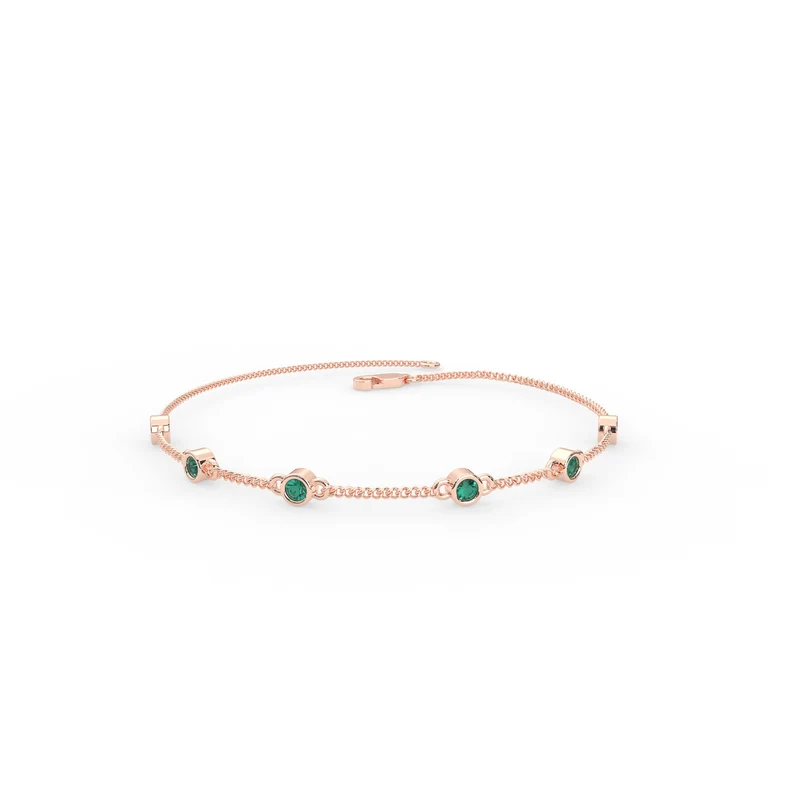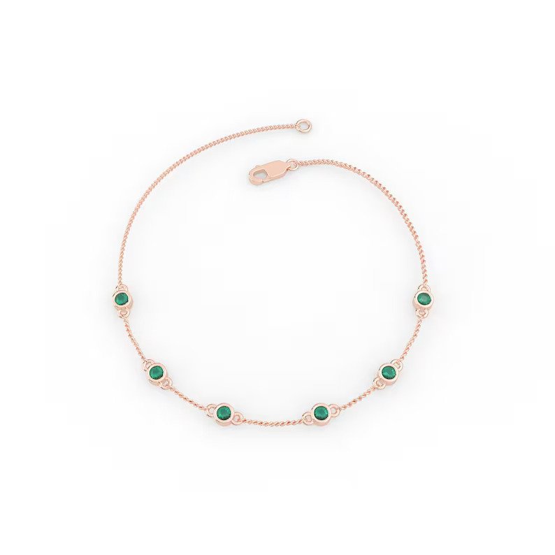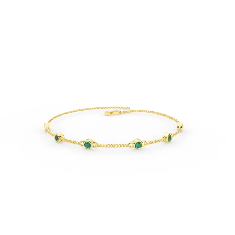 A delicate 18k solid gold bracelet featuring natural emeralds set in a station design, offering a vibrant and elegant touch to your wrist.
