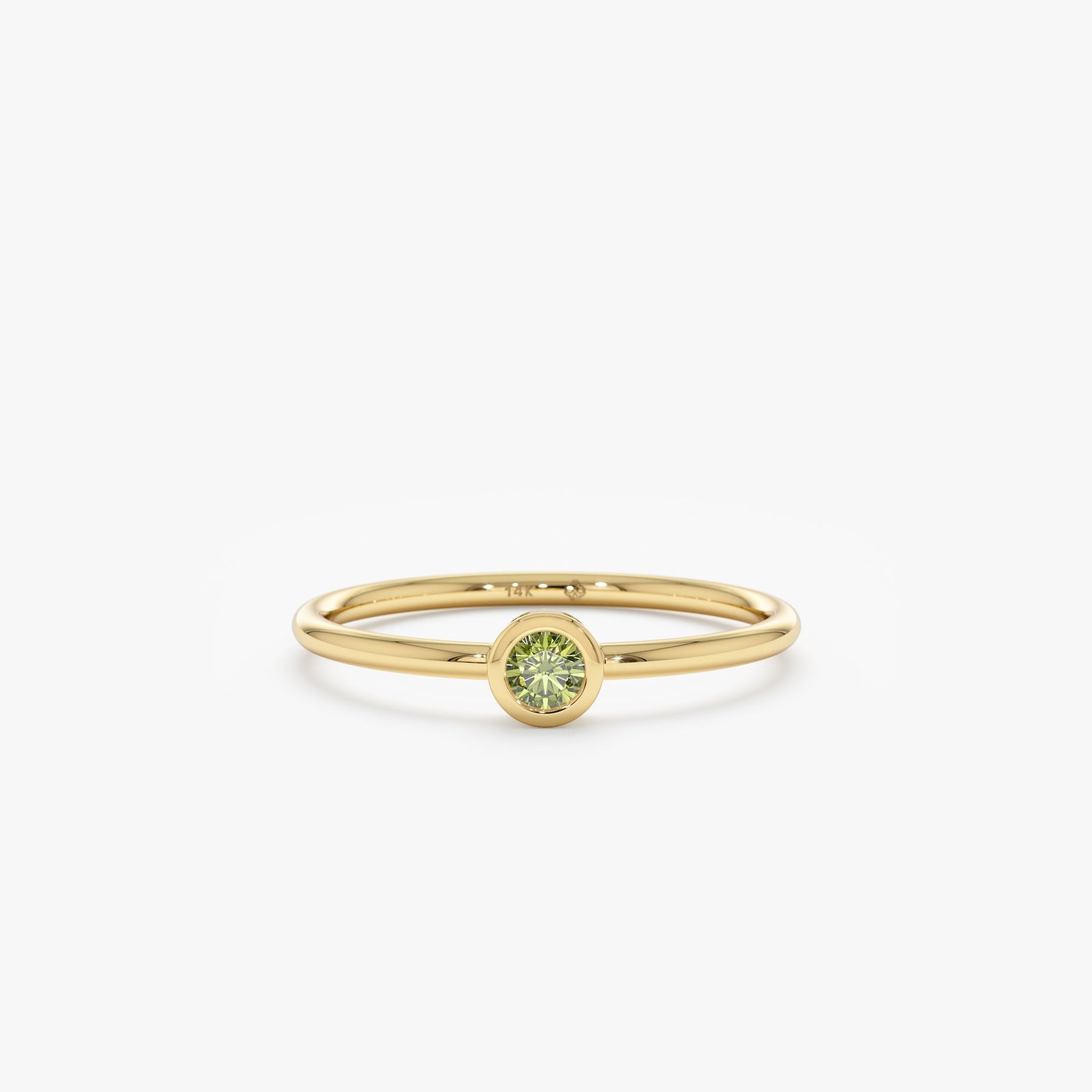 Each ring is meticulously handmade from solid gold, ensuring both quality and durability. The 4 mm natural peridot bezel is faceted to shine bright, set in a thick high-shine bezel that adds to its timeless charm.
