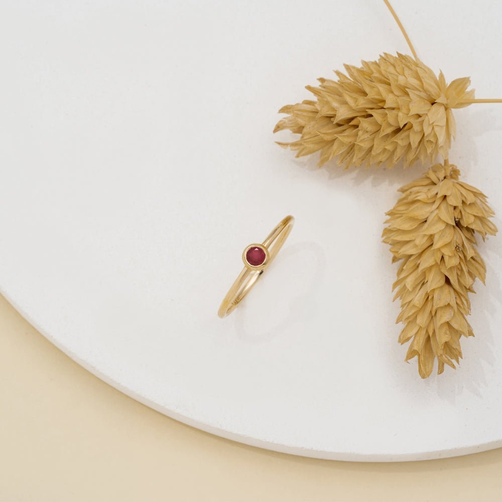 A stunning 18k solid gold ring featuring a vibrant natural ruby, offering a timeless and elegant design perfect for any special occasion.