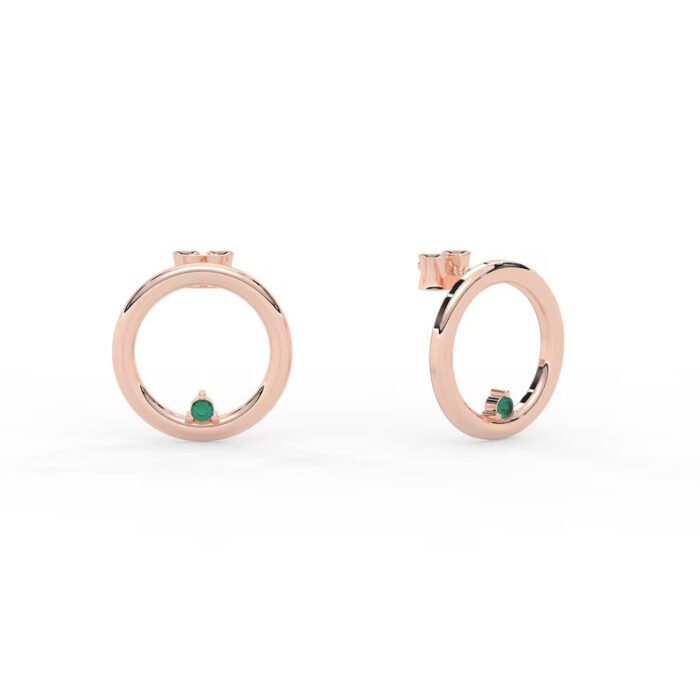 Elegant 18k solid gold earrings featuring an open circle design with natural emeralds, offering a timeless and sophisticated look perfect for any occasion.