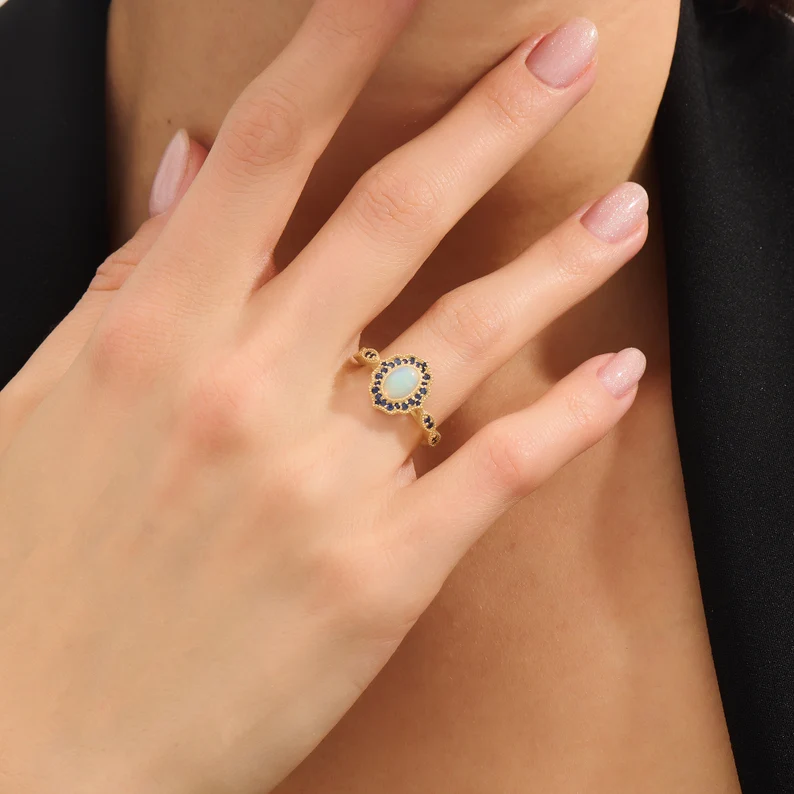 18K Solid Gold Oval White Opal Vintage Engagement Ring
