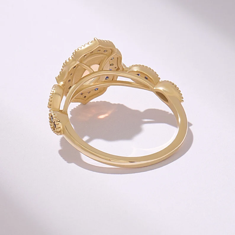 Romantic 18k solid gold engagement ring featuring an oval white opal in a vintage-inspired design—crafted for timeless charm and ethereal beauty.