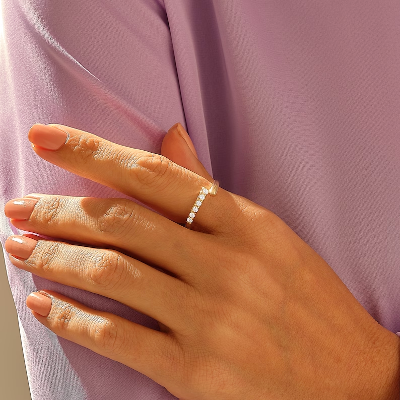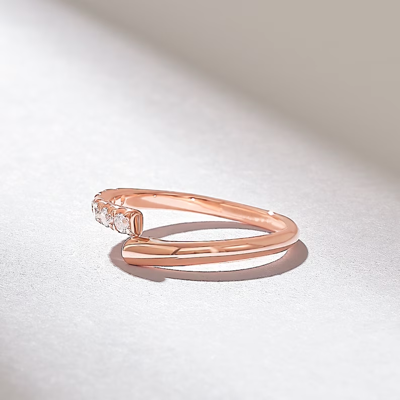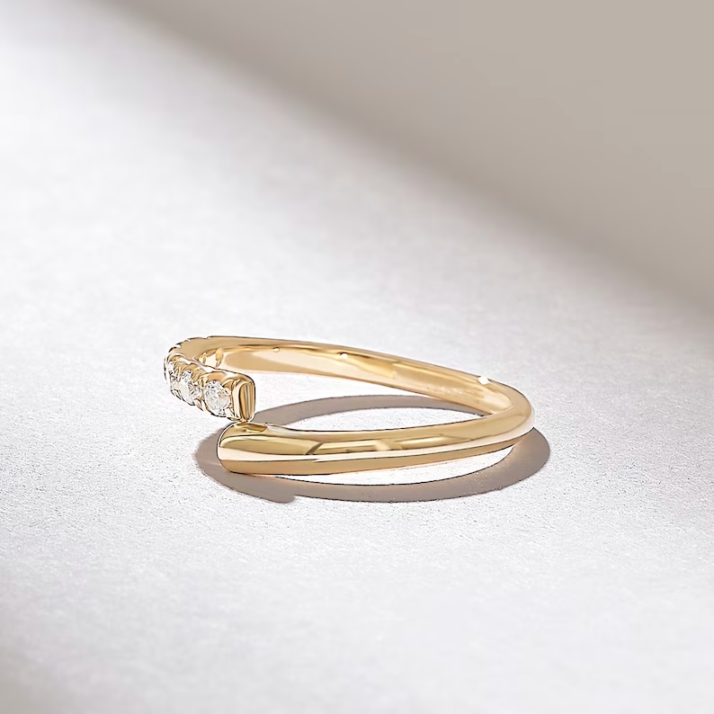 18K Solid Gold Pave Bypass Wedding Ring