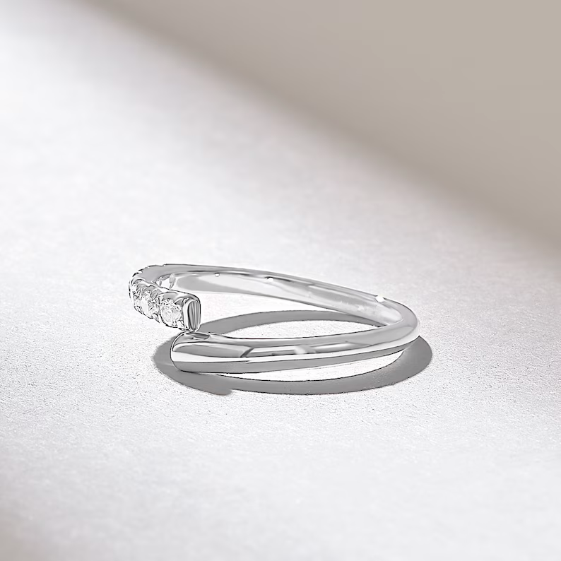 Ideal for stacking or wearing as a standalone piece, this ring is available in your choice of White, Rose, or Yellow Gold, offering versatile styling options to suit any taste. Whether it’s a wedding band, an anniversary gift, or a meaningful statement ring, this wrap-around design embraces fluidity and modern sophistication.