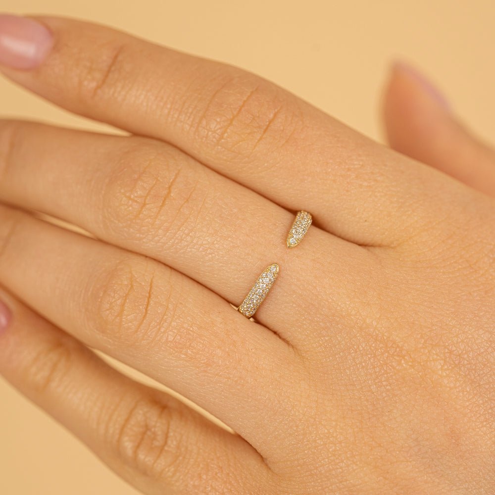 Bold yet refined, the 18k Solid Gold Pavé Natural Diamond Claw Ring is a contemporary classic designed for the modern minimalist. Crafted in 18k solid gold—available in white, rose, or yellow—this ring features a claw-inspired silhouette lined with GH color, VS-SI clarity natural diamonds, offering a striking sparkle in a clean, geometric form. With a total diamond weight of 0.10 carats, the pavé-set stones lend just the right amount of brilliance to elevate your everyday look.
