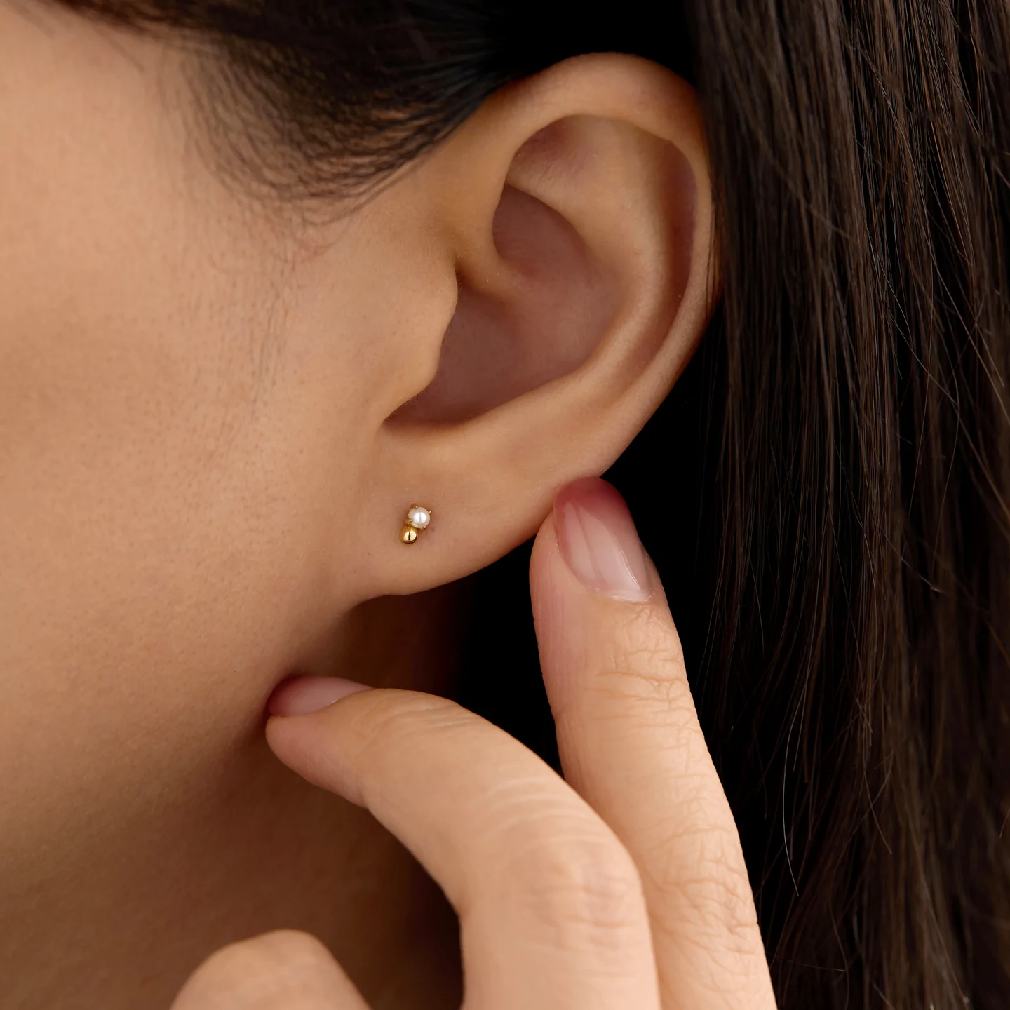 Introducing our beautiful 18k Solid Gold Pearl Volley Studs , perfect for any occasion. Crafted from premium 18k solid gold, these studs are available in your choice of white, rose, or yellow gold, making them a versatile addition to any jewelry collection.