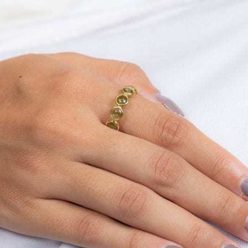 Crafted with precision and attention to detail, the 18k Solid Gold Peridot Eternity Band showcases superior craftsmanship. The smooth finish of the gold band and the precise bezel settings underscore the artisan’s dedication to creating a piece that is as durable as it is beautiful.
