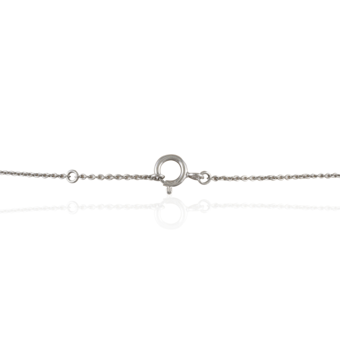 Adding to the elegance, this necklace is adorned with twenty-two diamonds totaling 0.08 carats. The diamonds, measuring 1.09 mm each, are set in a sophisticated prong setting that enhances their natural brilliance. This design allows their vivid sparkle to shine through, creating a captivating effect that elevates the overall appeal of the necklace.