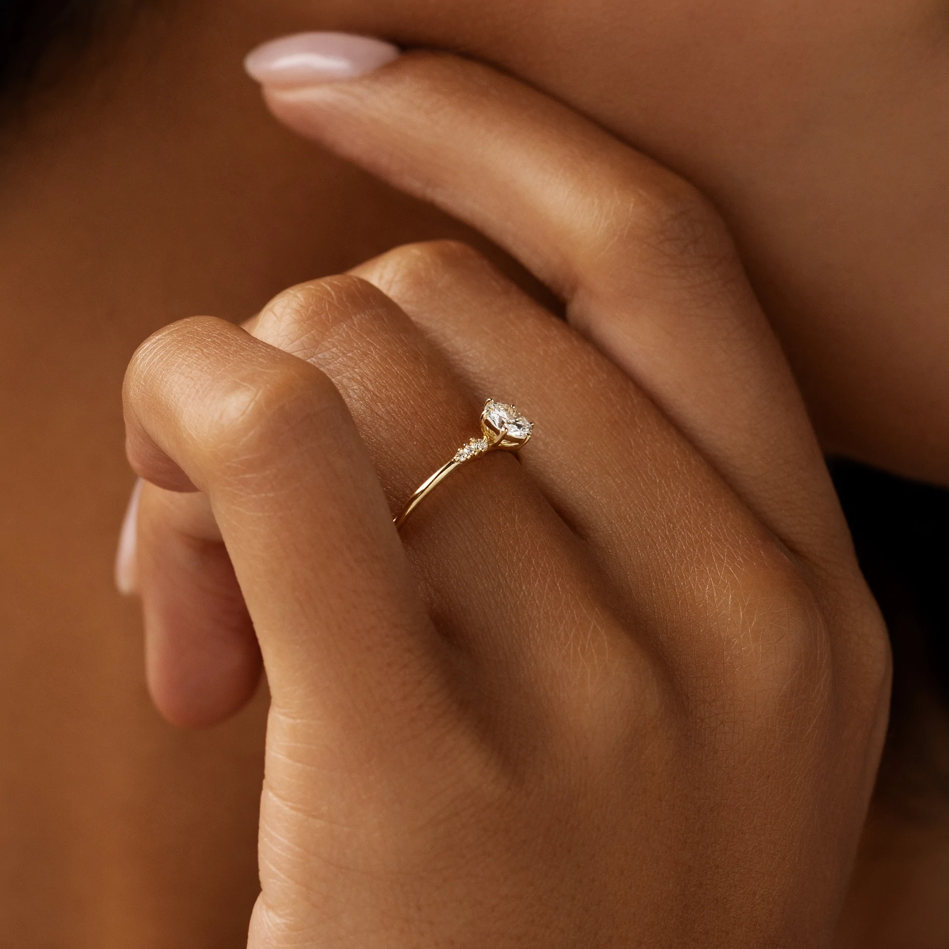 Delicate and dainty, the Poppy Seed Ring features a 0.41ct round cut moissanite—an elegant touch of sparkle, perfect for daily wear or meaningful moments.