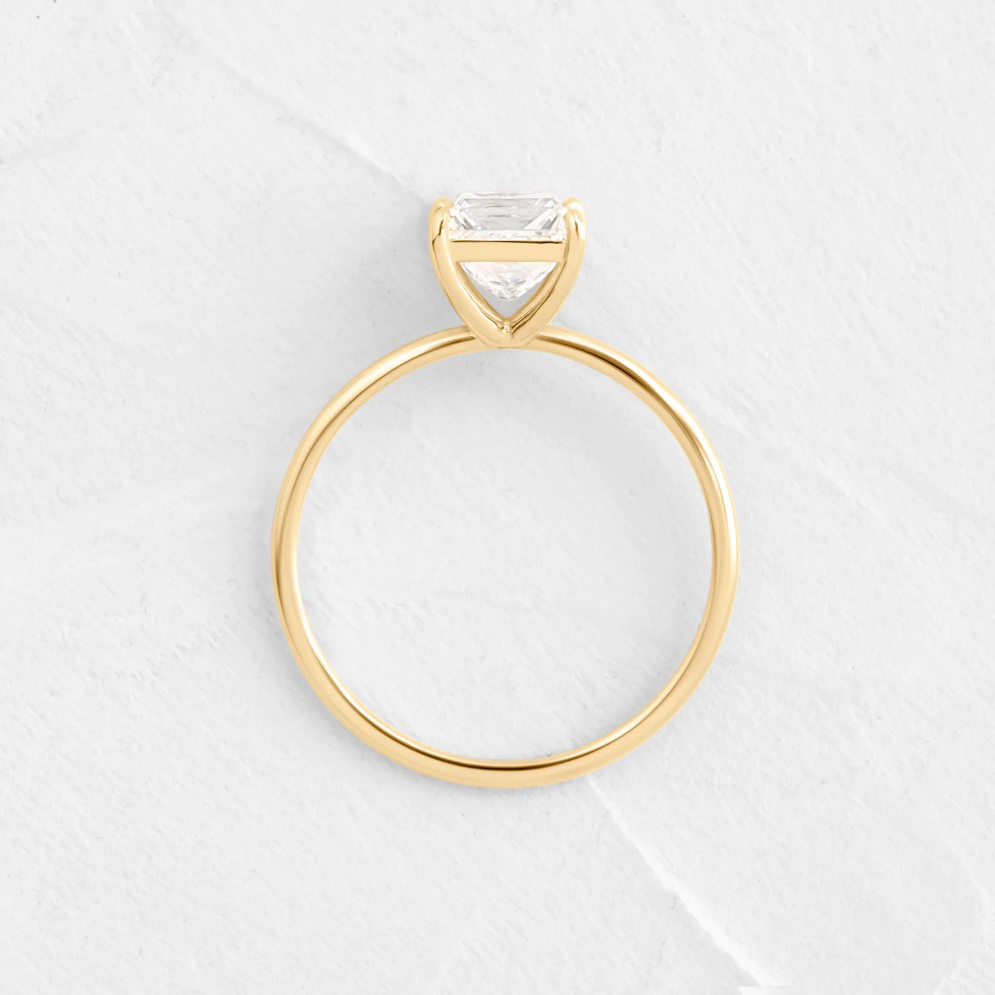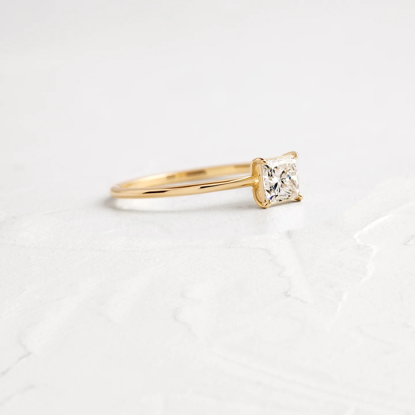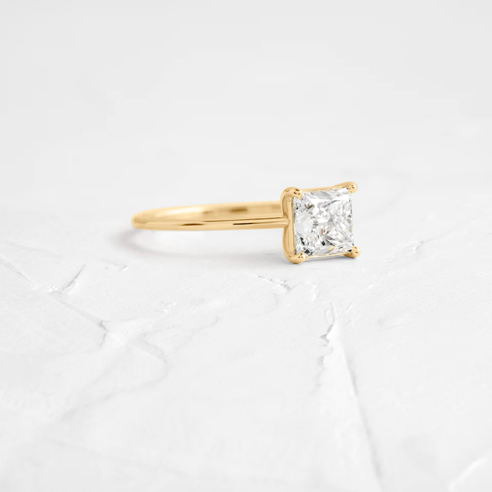 This ring is crafted from premium 18k gold, with a princess-cut lab-grown diamond known for sharp edges and brilliant facets.