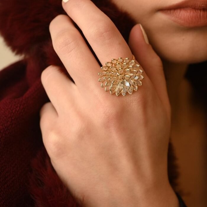 With a gross weight of 6.229 grams, the ring offers a substantial yet comfortable fit. Its unique sunflower design symbolizes beauty and positivity, making it a perfect piece for those who appreciate both classic elegance and unique artistry.