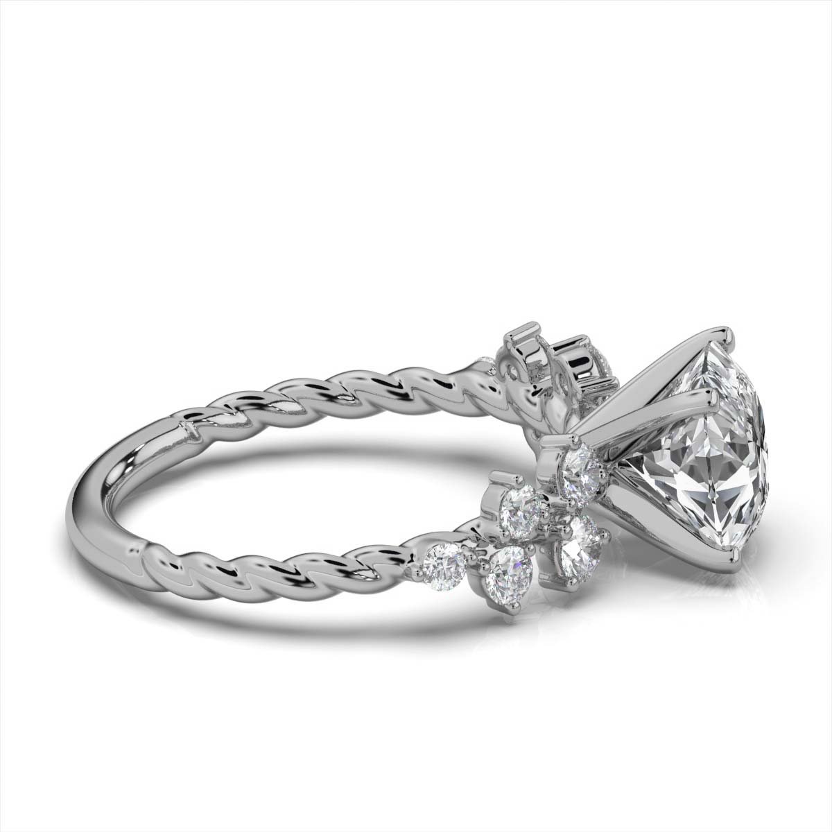 - Side Stones: Moissanite Diamonds (Round, 0.36 ct total, D color, VVS1 clarity)