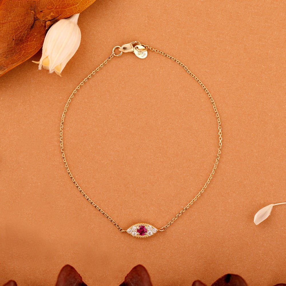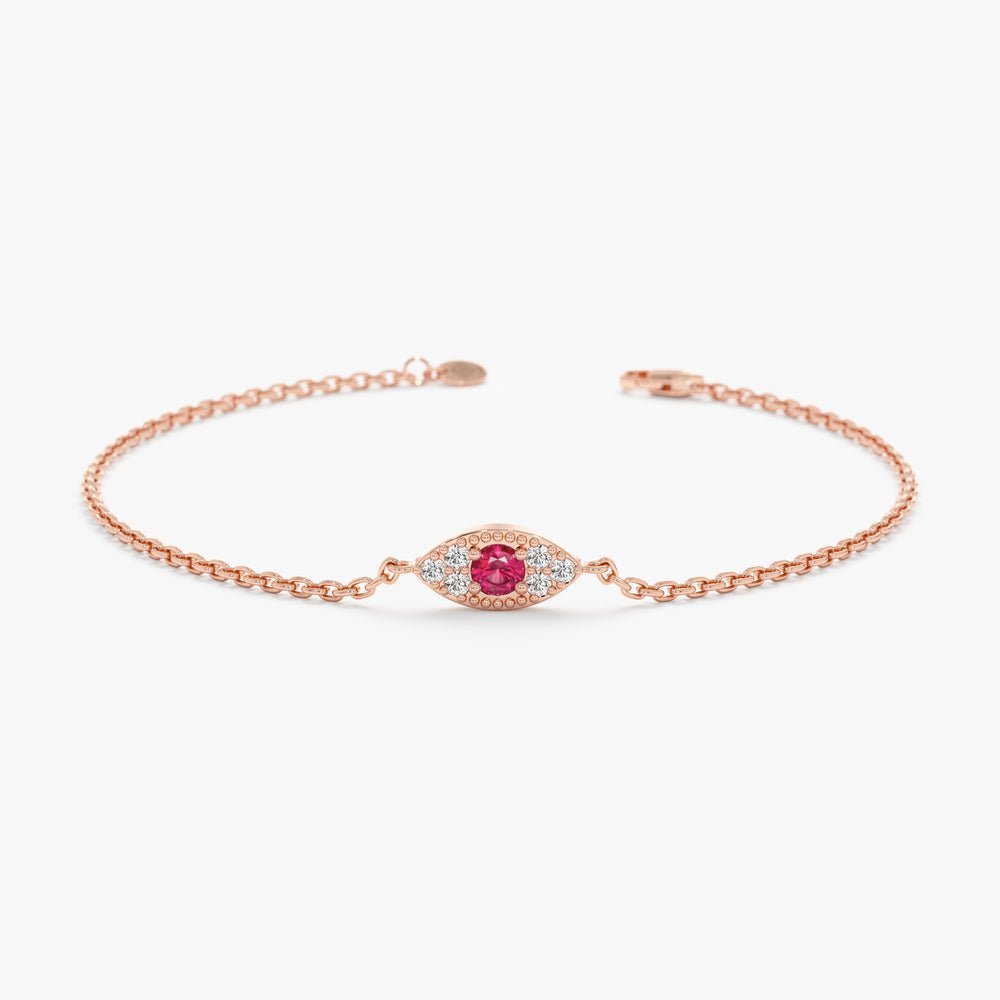 Whether worn as a stylish accessory or as a meaningful talisman, our Ruby Eye Diamond Bracelet is sure to make a statement wherever you go. It’s a timeless piece that exudes both beauty and significance, making it the perfect choice for those who appreciate both style and symbolism.