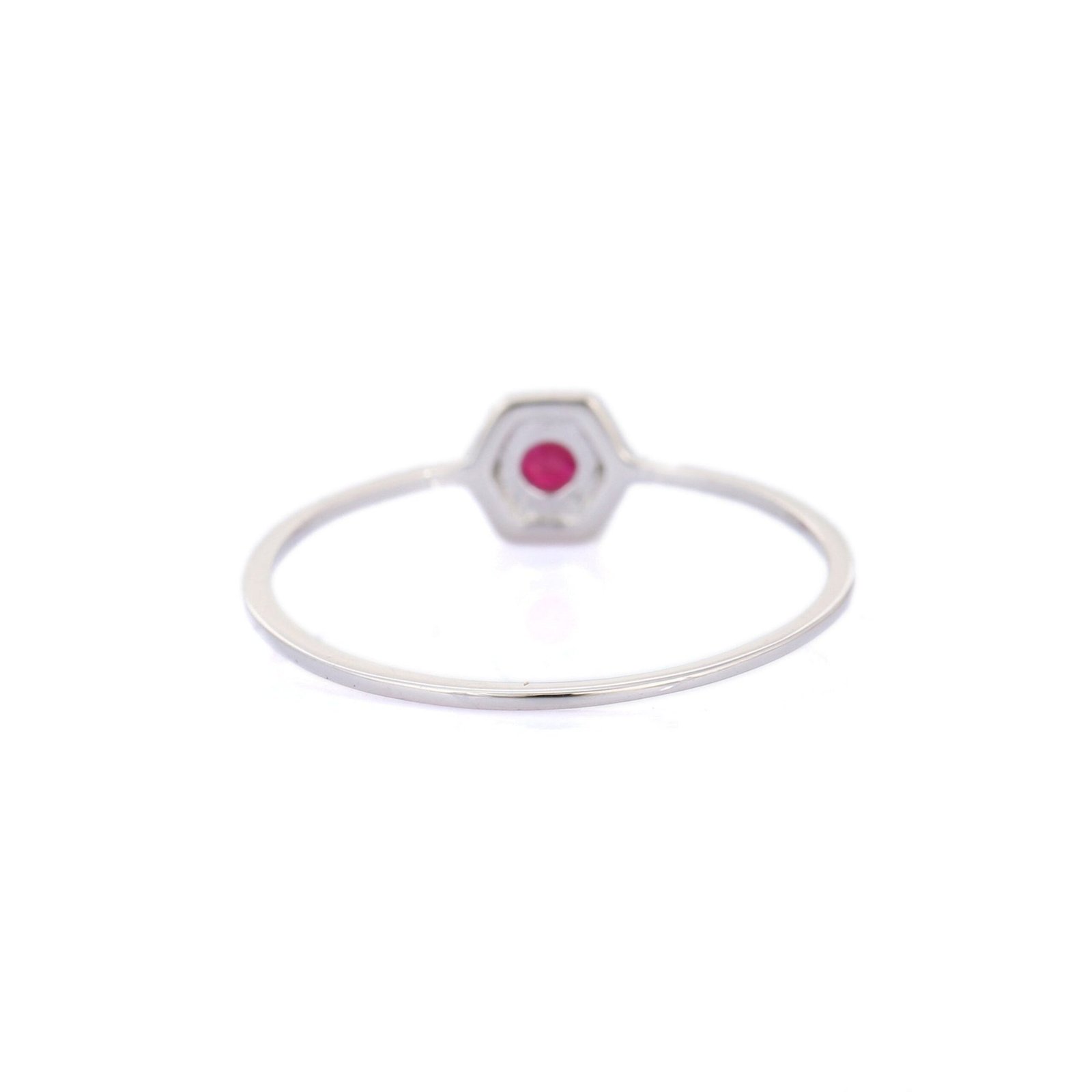The round ruby is set in a classic prong setting, which highlights its natural brilliance and ensures a secure fit. The white gold band provides a sleek, modern backdrop that enhances the rich hue of the ruby, allowing it to shine with unparalleled elegance. The high-polish finish of the white gold adds a touch of sophistication, making this ring a versatile addition to any jewelry collection.