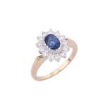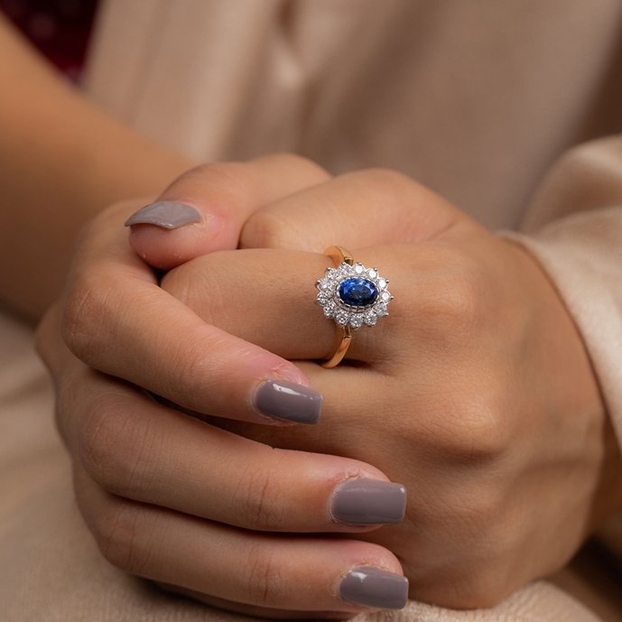 At the heart of this ring is a captivating 1.80 ct sapphire gemstone. The sapphire, renowned for its deep, mesmerizing blue color, measures 6 x 8 mm and is cut in an oval shape. This classic cut enhances the stone’s brilliance, allowing it to catch the light beautifully and showcase its stunning color and clarity. Sapphires are known for their durability and are often associated with wisdom and nobility, making this ring not only a beautiful accessory but also a meaningful one.