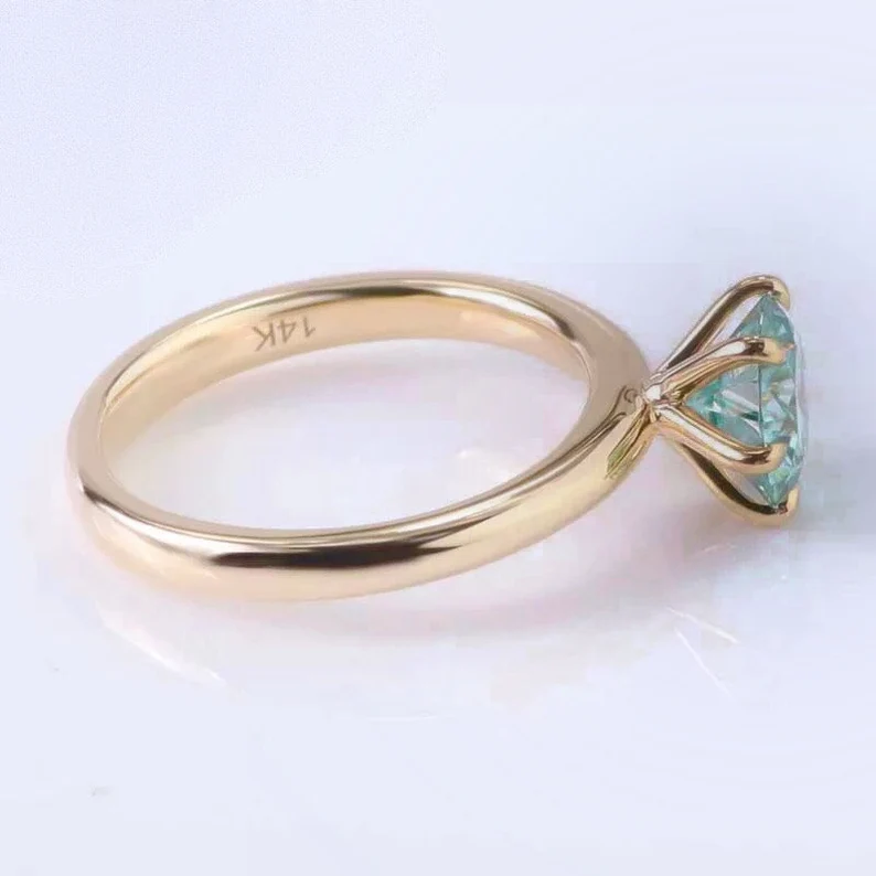 A breathtaking 14K solid gold engagement ring featuring a vibrant teal sapphire, accented by sparkling diamonds for a unique and timeless design.