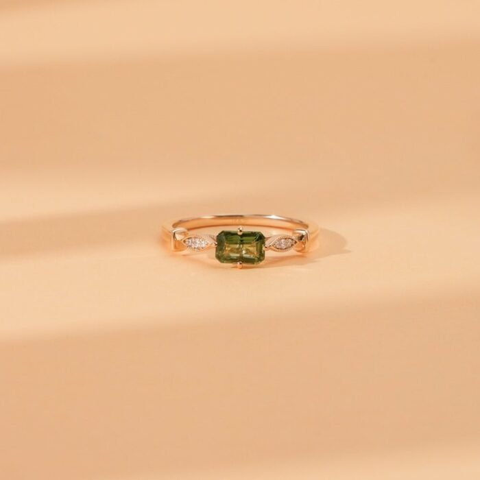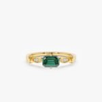Elegant 14K solid gold diamond and octagon-cut emerald ring, featuring a striking octagon-cut emerald surrounded by dazzling diamonds for a refined, sophisticated look.