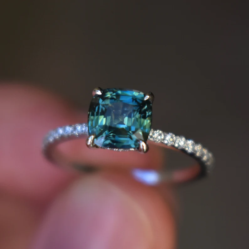 Be the first to review “18K Solid Gold Teal Sapphire Hidden Halo Diamond Engagement Ring” Cancel reply
