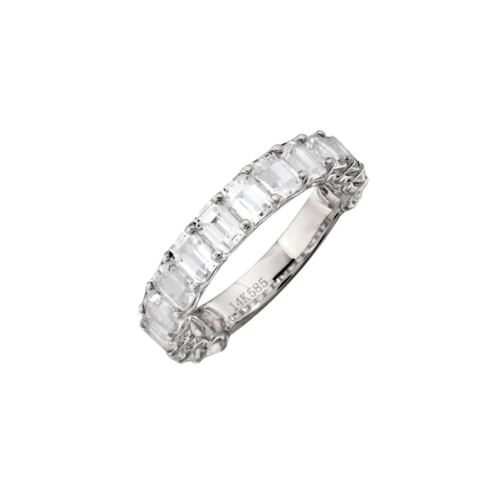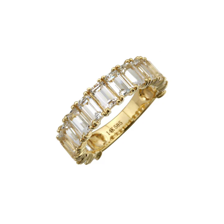 18K Solid Gold Topaz Emerald Cut 3/4 Band