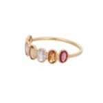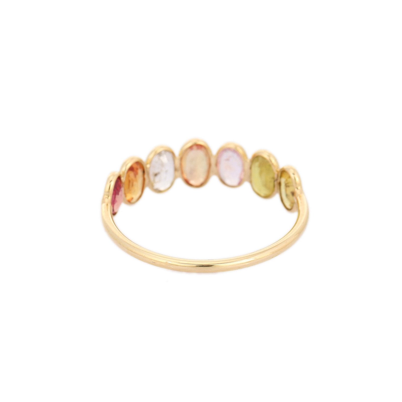 Weighing just 1.45 grams, the half eternity band offers a lightweight and comfortable fit, making it ideal for stacking with other rings or wearing alone as a statement piece. The minimalist design and colorful gemstones make it suitable for both casual and formal occasions, adding a touch of elegance to any ensemble.