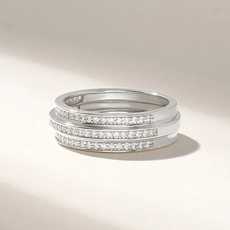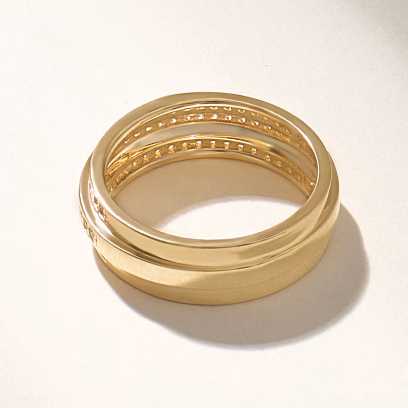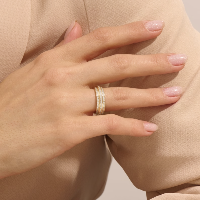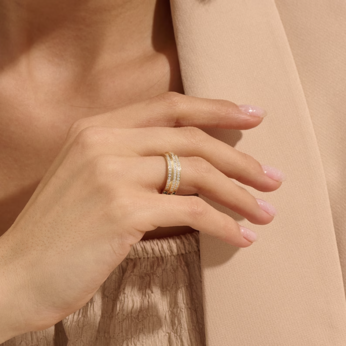 Radiating brilliance and bold elegance, the 18k Solid Gold Triple Band Pave Natural Diamond Ring is a stunning reinterpretation of the classic half eternity band. Expertly crafted from 18k solid gold, this luxurious ring features a striking triple-row design that creates the illusion of three stacked bands in one cohesive piece. Choose from White, Rose, or Yellow Gold to suit your personal style.