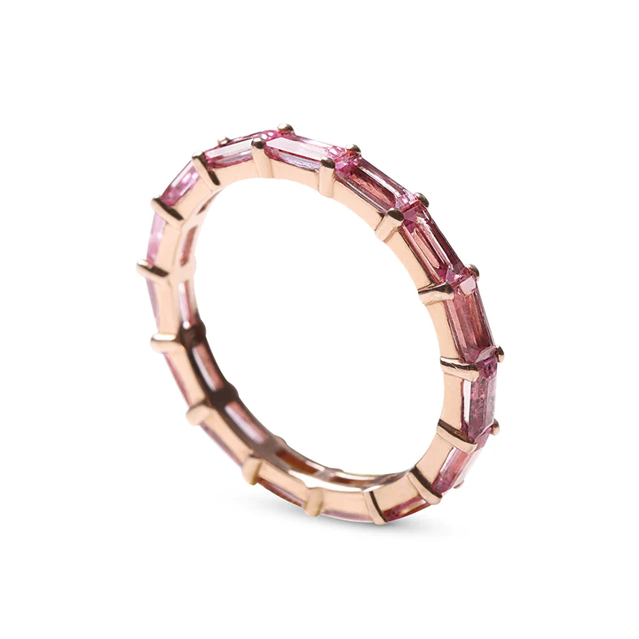 18k Solid Pink Sapphire Baguette Eternity Band