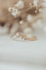 Designed in a sleek V-shape, this tracer band features five natural diamonds meticulously set to create a pointed silhouette that complements engagement rings or adds visual interest to any stack. Weighing approximately 3 grams, the band offers a comfortable and luxurious feel while maintaining a lightweight, stackable profile.