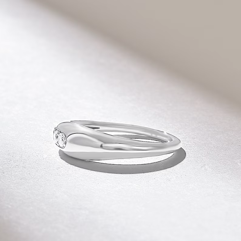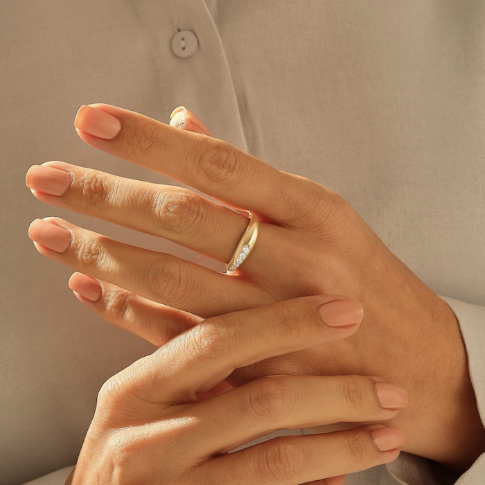 With a total carat weight of 0.24 ctw, the diamonds exhibit GH COLOR and VS-SI Clarity, ensuring excellent brilliance and fire. The band is thoughtfully designed with a 1.43 mm width and a 1.24 mm thickness, offering a comfortable yet noticeable presence on the finger. The gentle dome silhouette adds depth and dimension, making it a versatile piece suited for everyday wear or special occasions.
