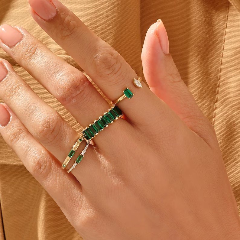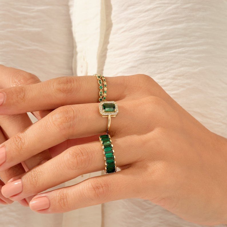 Certified BIS Hallmarked, this ring guarantees authenticity and exceptional quality. A breathtaking piece for those who appreciate timeless luxury, the Baguette Emerald Full Eternity Ring is a testament to enduring elegance.