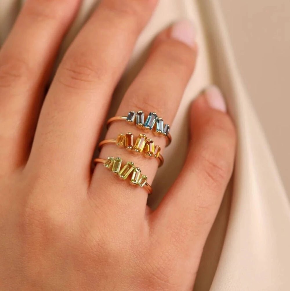 Make a statement of individuality and elegance with our 14K Solid Gold Baguette London Blue Topaz Ring, a striking embodiment of personal style and sentiment. Handcrafted with meticulous attention to detail, this exquisite ring combines timeless beauty with contemporary flair, making it a cherished addition to any jewelry collection.