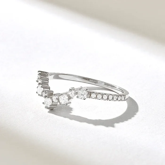 With a band width of 1.07 mm and thickness of 1.01 mm, the design is delicately slim while maintaining enough structure to be durable and stackable. Whether used as a wedding band, contour ring, or everyday stackable piece, this V-shaped diamond ring brings versatility and sophistication to your jewelry wardrobe.