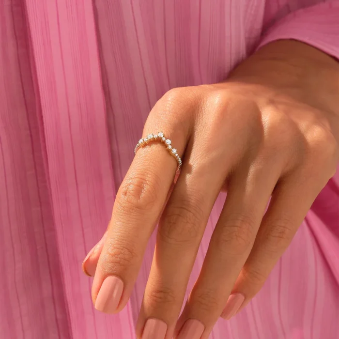 Bezel Natural Diamond Chevron Ring | 5 Stone Curved Wedding Ring | V-Shaped Ring Women