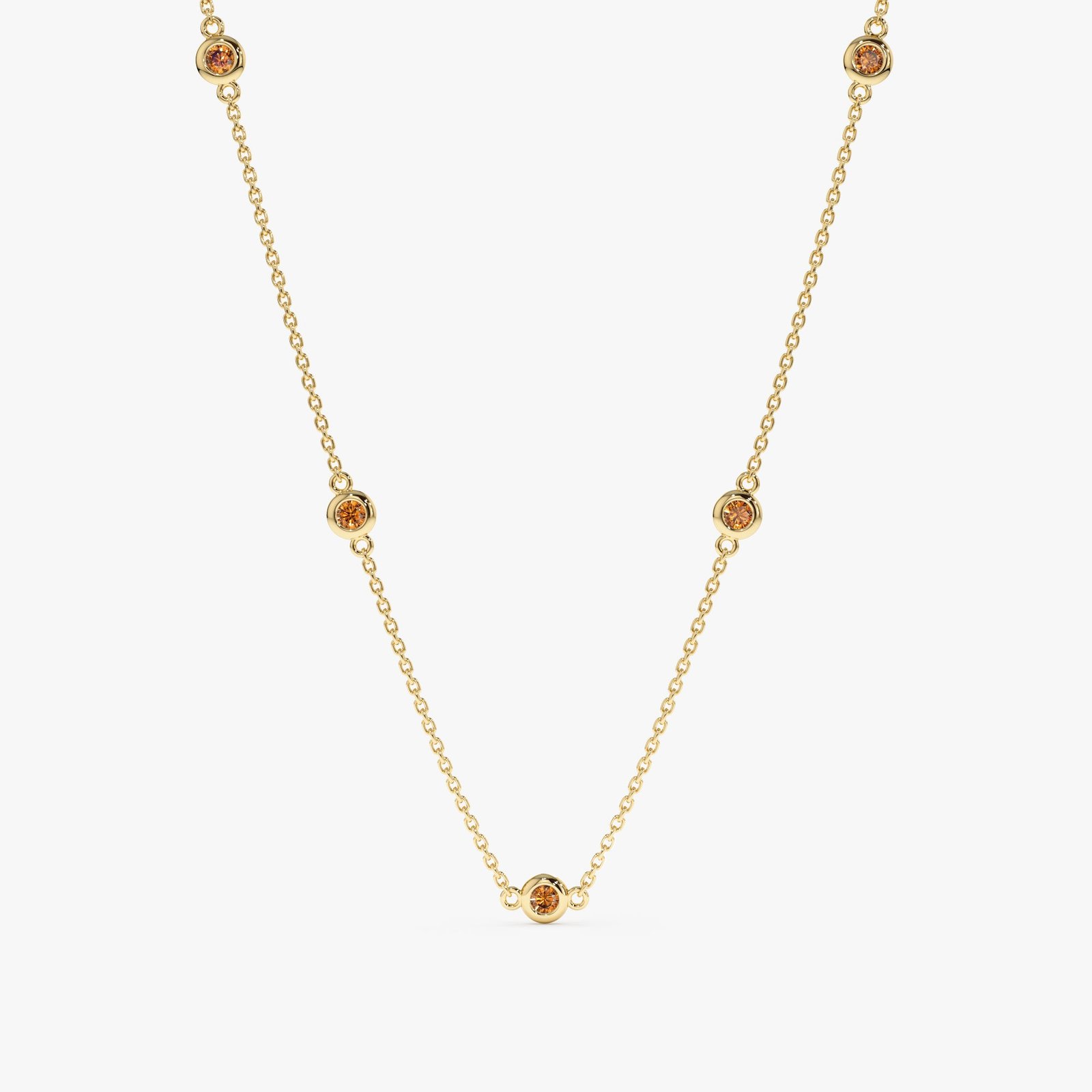 Elevate your style with the radiant warmth of our 14K Solid Gold Citrine Station Necklace. Handmade with care, this captivating piece features a string of natural citrine gemstones, each meticulously bezel-set in gleaming solid gold.