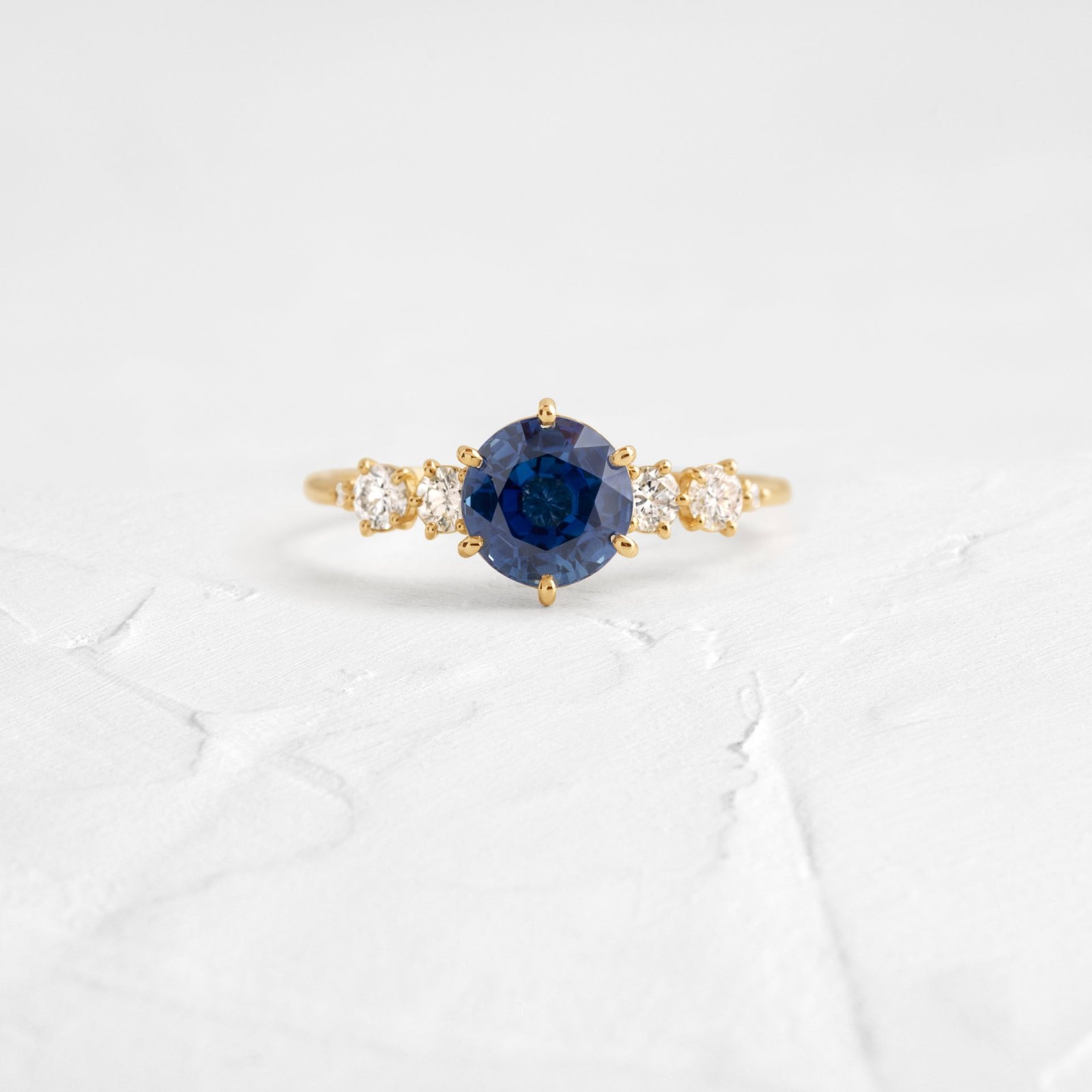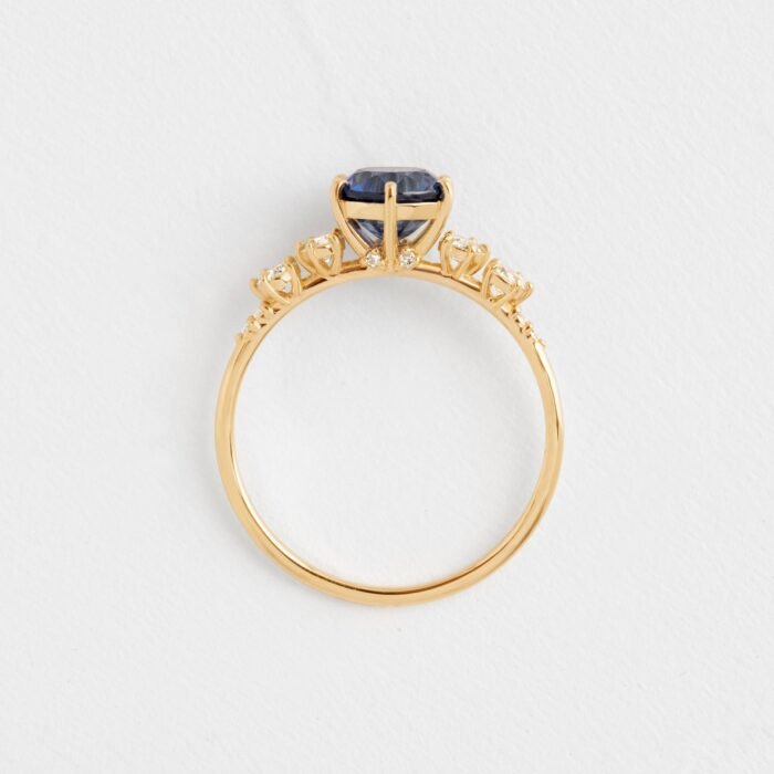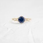 Discover the beauty of 14K Solid Gold Coda Ring . It is a stunning round cut blue sapphire ring in 14K Solid Gold. This ring is meant to capture attention with the beautiful striking and luxurious feel as it is available in White, Rose, and Yellow Gold. At the center of this ring is a radiant blue sapphire with its deep, captivating hue. These are said to symbolize wisdom, loyalty, and nobility.