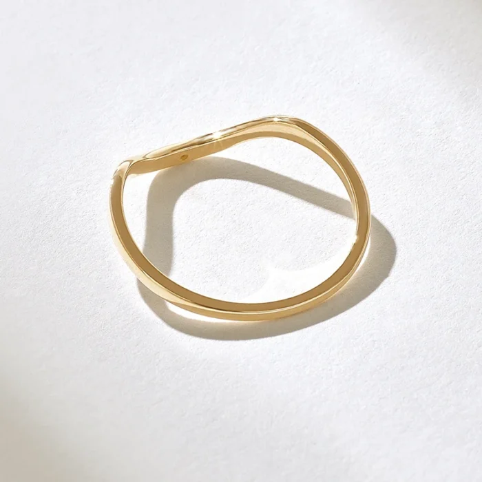 - Product Name: Curved Natural Diamond Solo Band | 18k Solid Gold Bezel Contour Ring | Melt Band Arch Ring