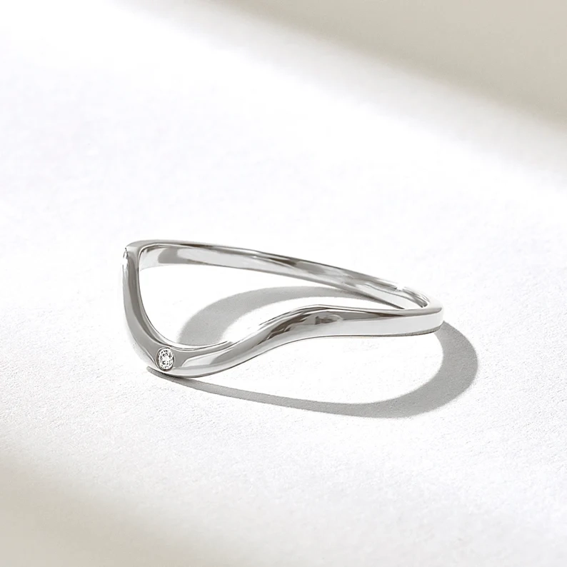 The gentle curve and melt band arch design add a modern twist to a classic silhouette, perfect for those who appreciate understated elegance with a contemporary edge. Whether worn alone or paired with other bands, this solo diamond band is a timeless accessory that complements any jewelry collection with refined charm.