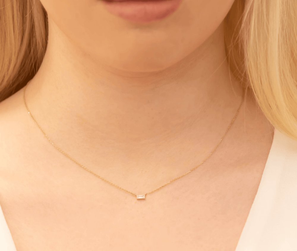 Discover understated luxury with our Dainty Natural Diamond Necklace, featuring a delicate 14k gold chain adorned with a single emerald-cut diamond for timeless elegance.