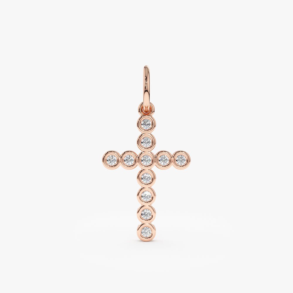 At the heart of this beautiful charm lies a dainty solid gold cross, available in your choice of yellow, rose, or white gold, radiating with understated luxury and enduring beauty. Adorning the cross are sparkling natural diamonds, each meticulously bezel-set to ensure maximum brilliance and security.