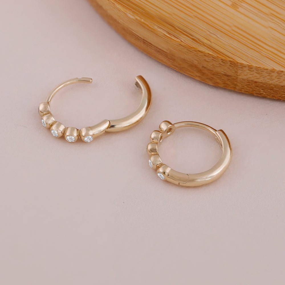 Timeless bezel-set sparkle in 18K solid gold—these diamond huggie hoops are made for effortless everyday elegance.