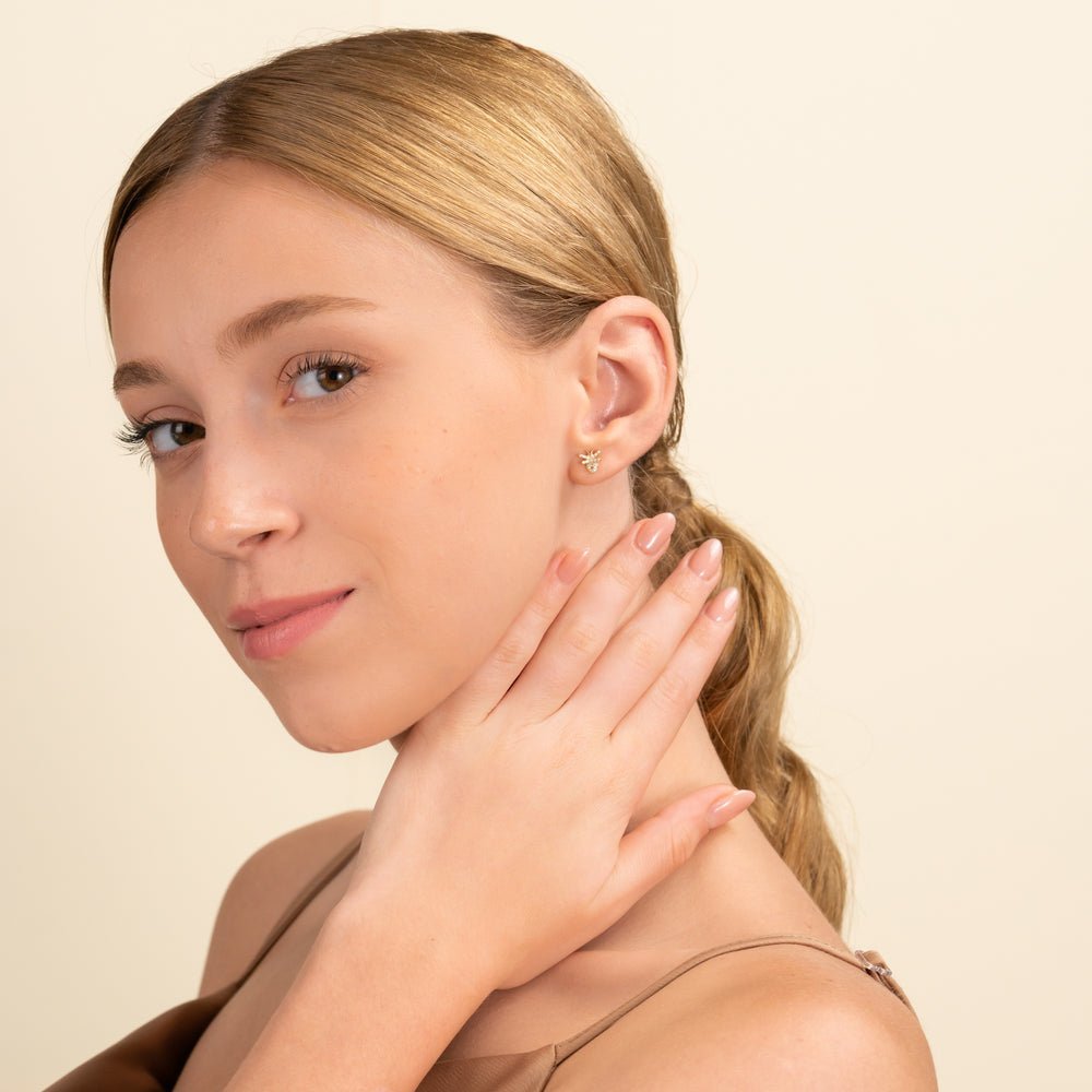 The diamond bumblebee studs are whimsical and stylish, perfect for adding a playful touch to any outfit.