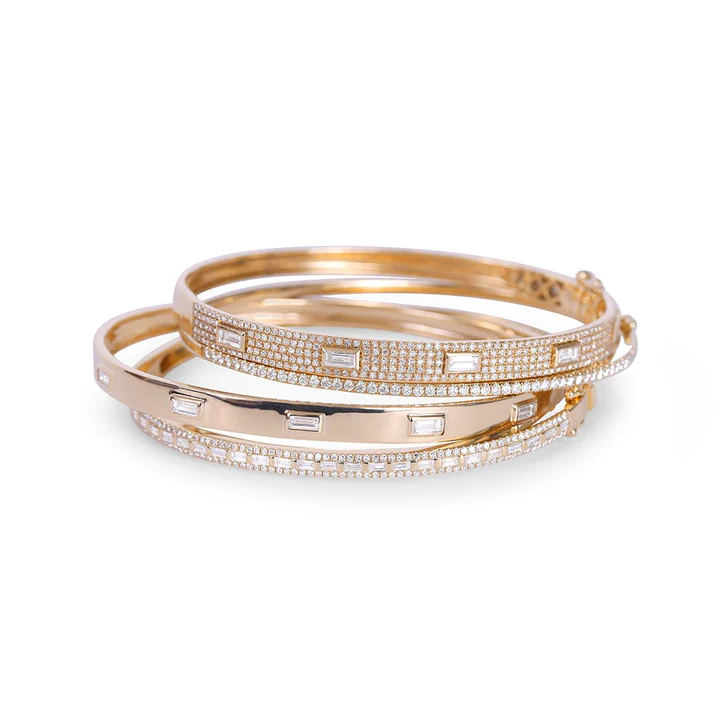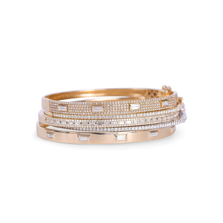 The Diamond Cigar Band Bangle with Inset Baguette Diamonds will surely upgrade your entire jewelry collection.