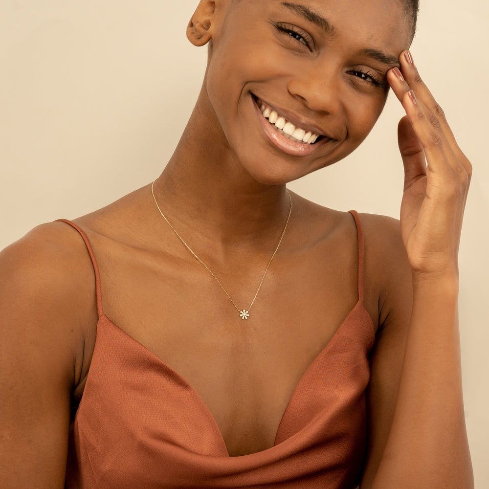 Indulge in the beauty of spring with our Diamond Daisy Necklace, a charming piece that brings a sense of joy and sophistication to every look.