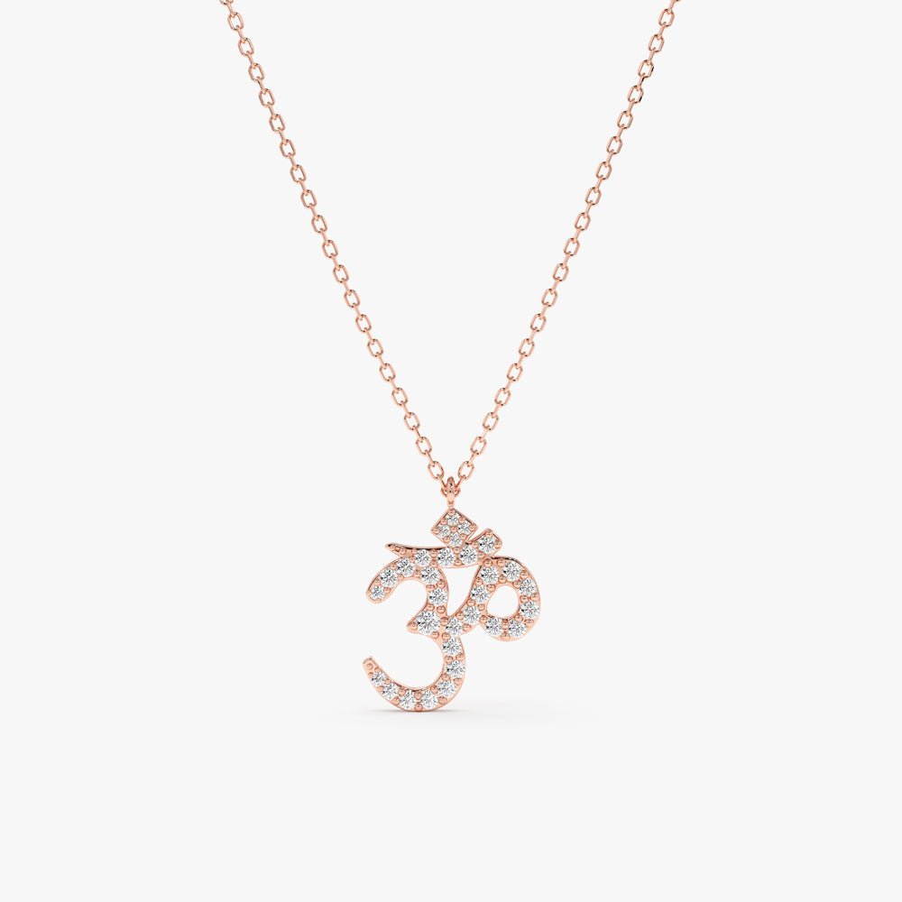 Diamond OM Mantra Necklace: A meaningful talisman crafted from solid gold and adorned with sparkling diamonds, representing the powerful OM mantra.
