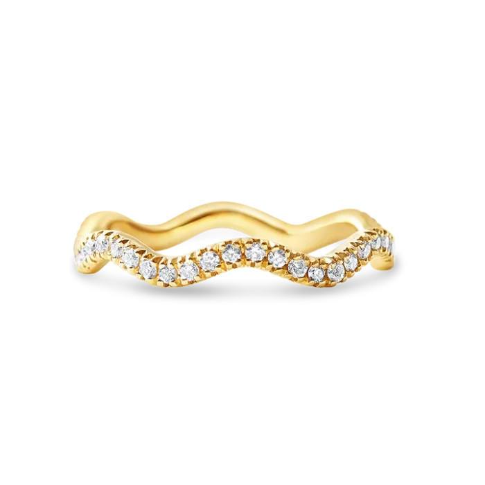 Simple in aspect, yet the craftsmanship at work behind the ring speaks great volumes. Whether paired with other rings for that chic stacked look, or on its own as that statement of subtle elegance, the Diamond Wave Stacking Ring offers endless styling possibilities.